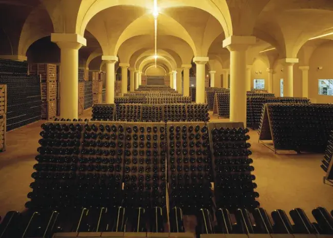 The Contadi Castaldi winery was founded in 1987, when Vittorio Moretti converted the brick-kiln of Biasca di Adro, an historic building erected in 1880, into a winery to produce some of the finest wines in Franciacorta.  The building, with its long arched underground passages, separated by thick walls, maintains the optimal temperature and moisture level. The company currently produces about 750,000 bottles of wine a year, made from prized grapes gathered from over 100 hectares of vineyards, located in areas that once corresponded to the counties (contadi) of Franciacorta, which were controlled by the local lord, the steward (castaldo). It has multi-year agreements with forty or so local vine-growers, who are supervised by a team of technical experts, from the planting of the vine to the hand harvesting of the grapes. The main advantage of this is being able to make best use of the micro climates, giving base wines different features that provide the cuvées with more complexity. These are superb wines that offer remarkable value in the world of sparkling Franciacorta.