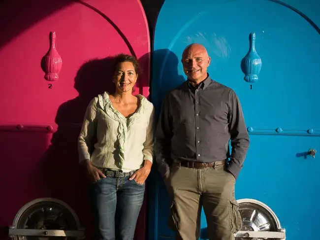 The name DueMani represents two hands from two people, Elena Celli and Luca D’Attoma. Elena was born and lives in Lucca. She studied marketing at Polimoda in Florence and worked in the fashion industry for many years. Luca was born in Borgo San Lorenzo, outside of Florence. A famous winemaker, he founded a winemaking and viticultural consulting company in 1991 called Wine Evolution Consulting (W.E.C.) through which he collaborates with wineries from various regions of Italy as well as Spain and Switzerland for the production of high quality wines. Luca’s most known credit is probably consulting for the Super Tuscan powerhouse Le Macchiole for over 25 years. During his time at Le Macchiole he created two of Italy’s most famous wines the Messorio Merlot and Paleo Syrah. He also credits Tua Rita’s Redigaffi as one of his creations as well.