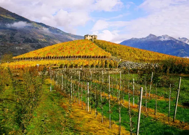 Because the Charrères believe great wines always start with quality grapes, vineyard management at Les Crêtes is firmly based on a meticulous agronomic management system. Spraying to control diseases is kept to a minimum to protect the regions delicate terroir and to follow the new E.U. rural policies for preserving mountainous areas. The soils that have developed over the centuries on the glacial hillsides around Aymaville are composed of a mixture of sand and calcareous rocks. Les Crêtes vineyards are located at relatively high mountain elevations (600 to 1,000 m. /1,970 to 3,280 ft.), and due to the high elevation climatic conditions, the harvests at Les Crêtes often begin in late autumn. This gives the grapes time to ripen while exposed to a wide variation in day and night temperatures, a natural process which adds to the unique aromatic character and flavor profile of the resulting wines. Les Crêtes produces its wines in a very specific context, characterized by high mountains, sandy slopes and alpine temperatures. Attention to the environment, cultivation techniques combined with specialized research and experimentation are the key aspects to each wines production.