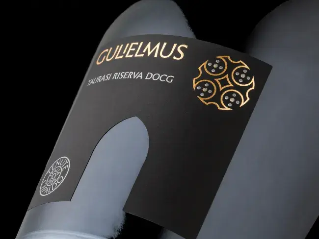 Gulielmus Taurasi (Aglianico) comes from a 5 acre vineyard in Taurasi, in the Sala district, where the soil is clay and the traditional guyot trellised vines have been planted, starting from 1992, with buds harvested from the old pre-phylloxera vineyards. The harvest is done by hand between mid-October and early November. After fermentation in steel, the wine ages for 18-24 months in barriques and again in the bottle for over two years prior to release.