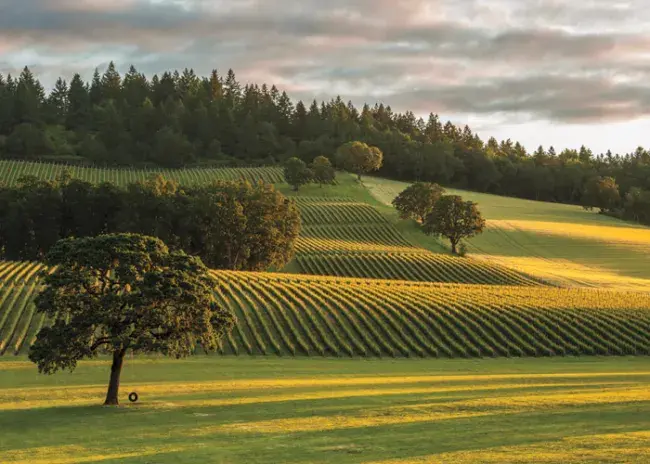The Willamette Valley, Oregon’s leading wine region, has two-thirds of the state’s wineries and vineyards and is home to more than 500 wineries. It is recognized as one of the premier Pinot Noir producing areas in the world. Buffered from Pacific storms on the west by the Coast Range, the valley follows the Willamette River north to south for more than a hundred miles from the Columbia River near Portland to just south of Eugene. To the east, the Cascade Range draws the boundary between the Willamette Valley’s misty, cool climate and the drier, more extreme climate of eastern Oregon. At its widest point, this long, broad valley spans sixty miles. Overall, the climate boasts a long, gentle growing season – warm summers with cool evenings; bursts of Indian summer into fall; mild winters followed by long springs. In ideal years the maritime climate provides the best conditions possible for growing the cool-climate grape variety for which Oregon is best known: Pinot Noir. In lesser years, fall weather can be tricky, causing winemakers to pull their hair. By this measure the Willamette Valley compares favorably with the Burgundy and Alsace regions of France. And, like it or not, the often finicky Willamette Valley climate is the promised land for Pinot Noir in America. Wineries also produce Pinot Gris, Pinot Blanc, Chardonnay, Riesling, Melon, Gewürztraminer, sparkling wine, Sauvignon Blanc and some Syrah, Cabernet, and Merlot among other lesser-known varieties.